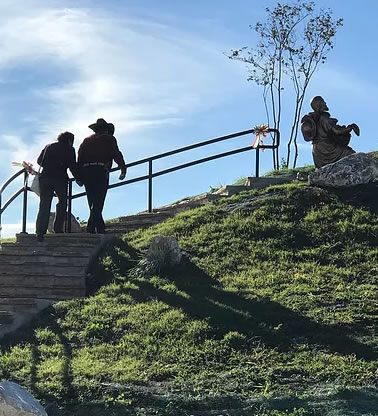 After the crowd disperses, this couple returns to Our Lady of Guadalupe to pray together at the top of the hill.